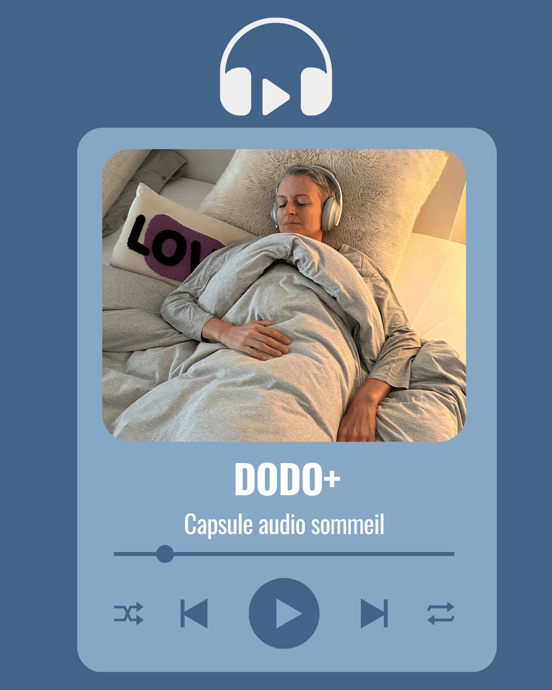 Dodo+ est une session audio de 15 minutes qui utilise différentes approches validées scientifiquement, comme la relaxation guidée, le travail de la respiration (breathwork), la visualisation mentale, l'auto-hypnose et des ambiances sonores apaisantes (ondes favorisant le sommeil)