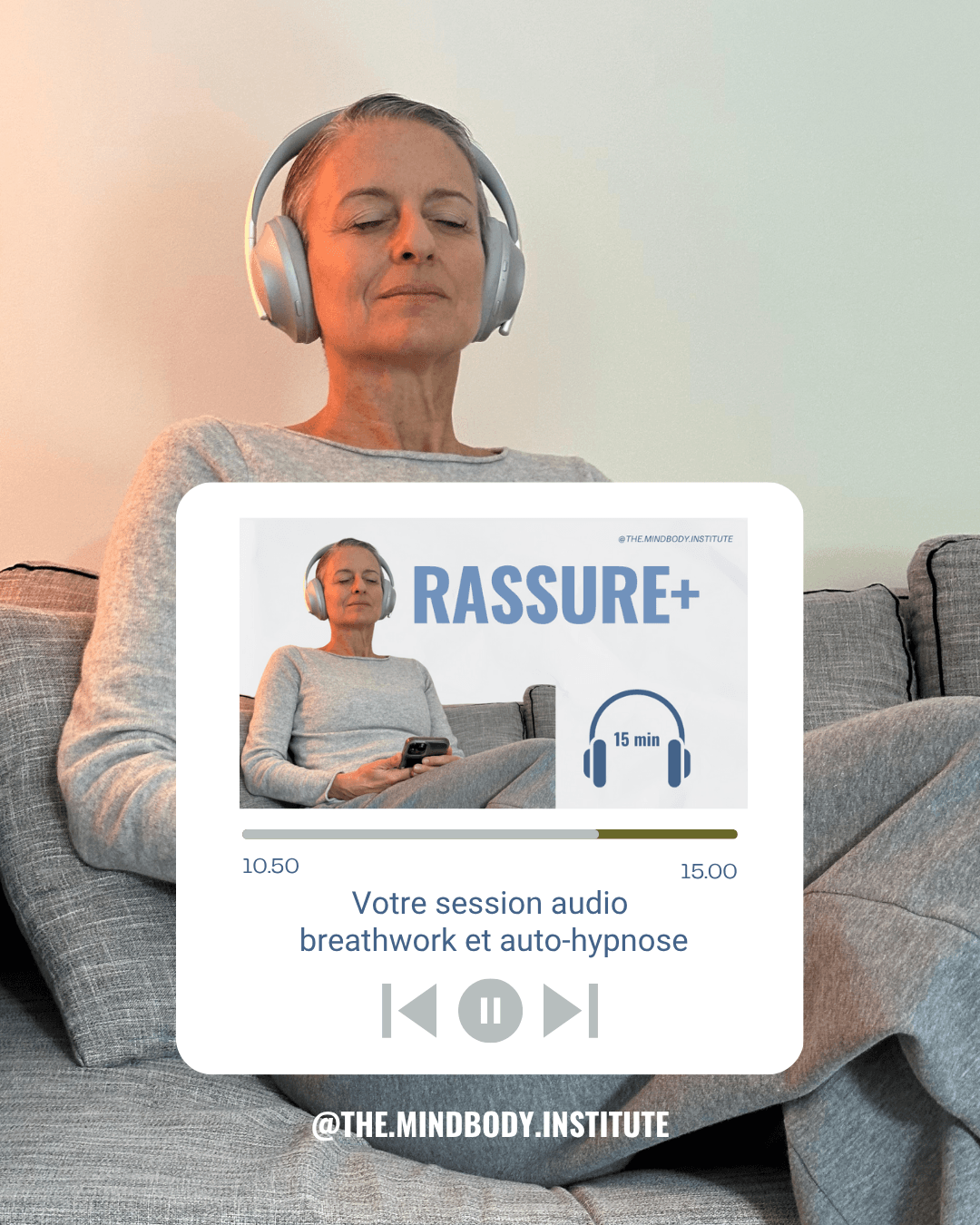 Rassure+ combine trois approches psycho-corporelles validées scientifiquement : l’auto-hypnose, le breathwork (travail de la respiration), et la visualisation.